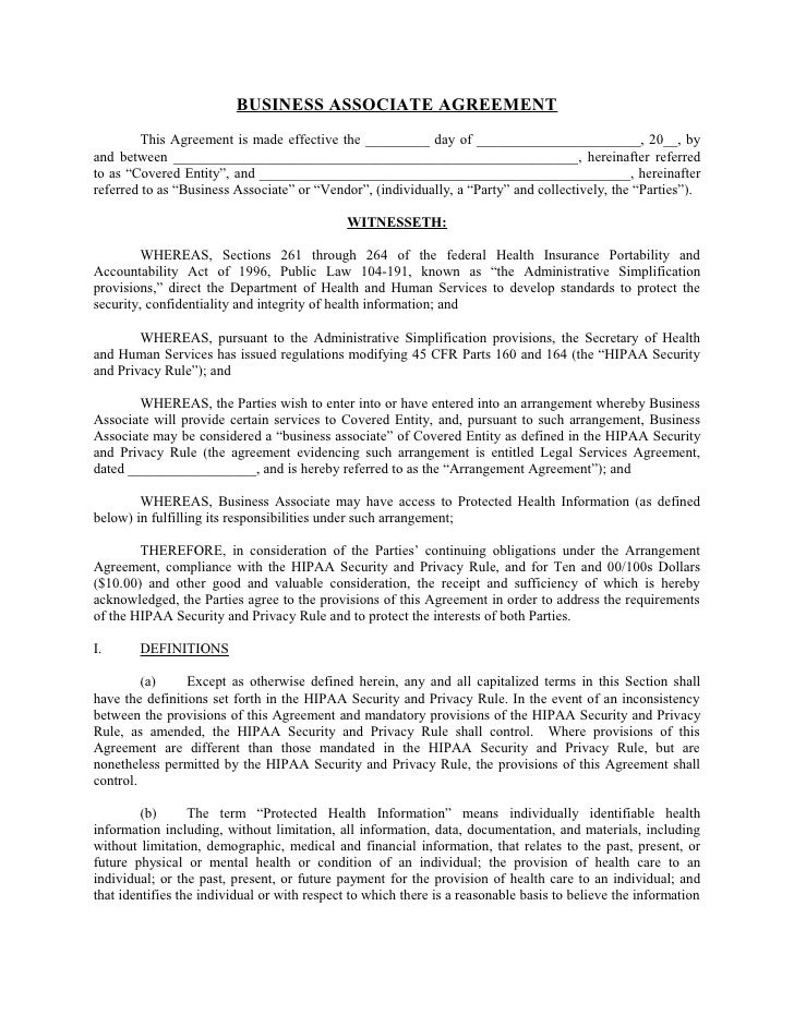 Before using such a template, it is important to check for whom that template has been designed to make sure it is relevant. Download and review this free template Business Associate Agreement that addresses the relationship between a HIPAA covered entity and a business This Business Associate Agreement ("BAA") provides sample language and provisions required for compliance with the HIPAA privacy and. Sections to hold harmless a company or business for any We've put together the ultimate list of business contract templates.